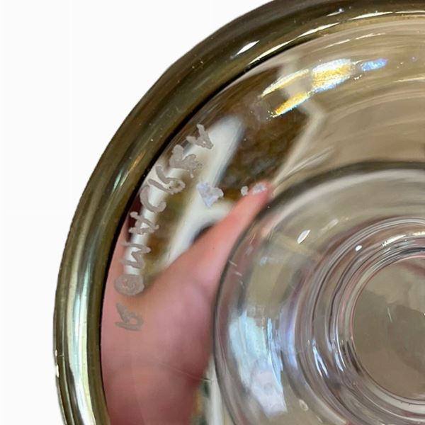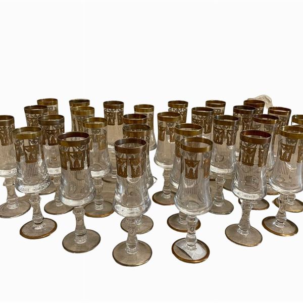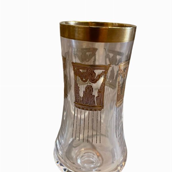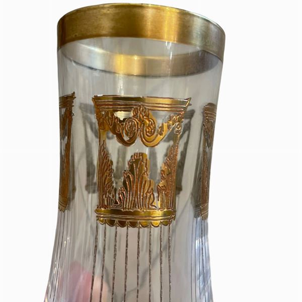 in vetro bianco con finiture in oro zecchino, a motivi floreali. Manifattura romana, firmati alla base Romacrea