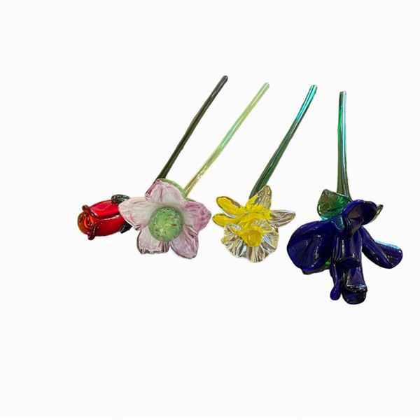 Lotto di 4 fiori in vetro, seconda metà XX secolo