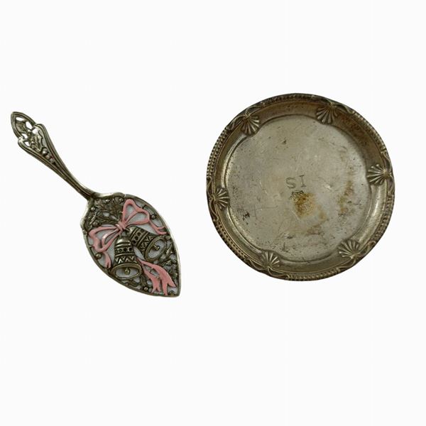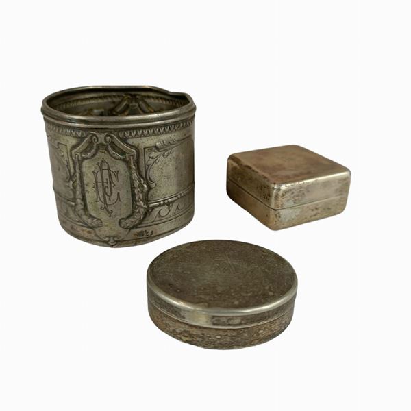 Forme e misure differenti, oggetti in argento 800 su 1000. Argenteria italiana, XX secolo. Parti incise e a rilievo. Peso grammi 205