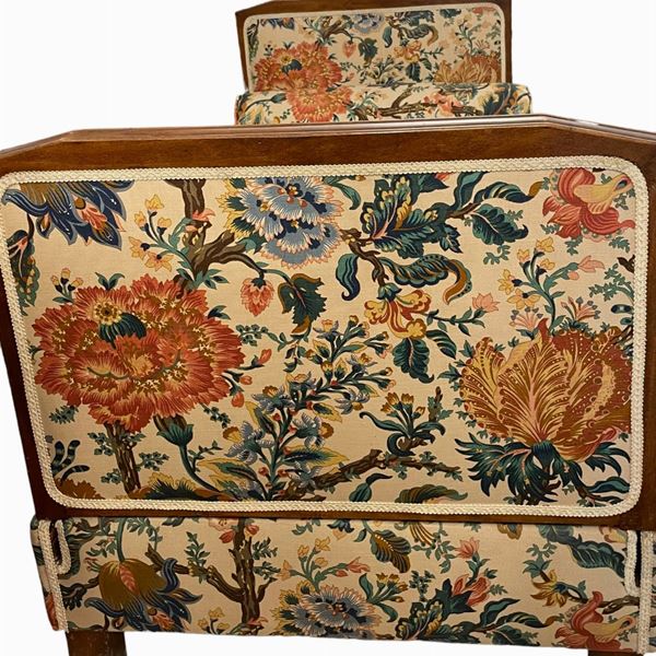 con spalliere reclinabili, in legno di rovere. Tappezzeria floreale con due cuscini a rullo