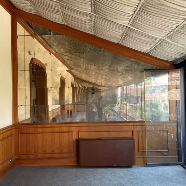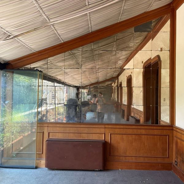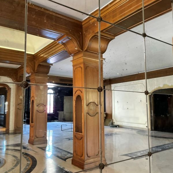 cinque pareti di cui, una della grande hall (misura H 240 x 570 cm) composta da specchi (misura 31 x 31 cm), due pareti della sala congressi Cabrini (misura H 247 x 414 cm) con boiserie e specchi (misura 49 x 51,8 cm) e due della sala colazione specchi ( misura 40 x 41,5 cm).