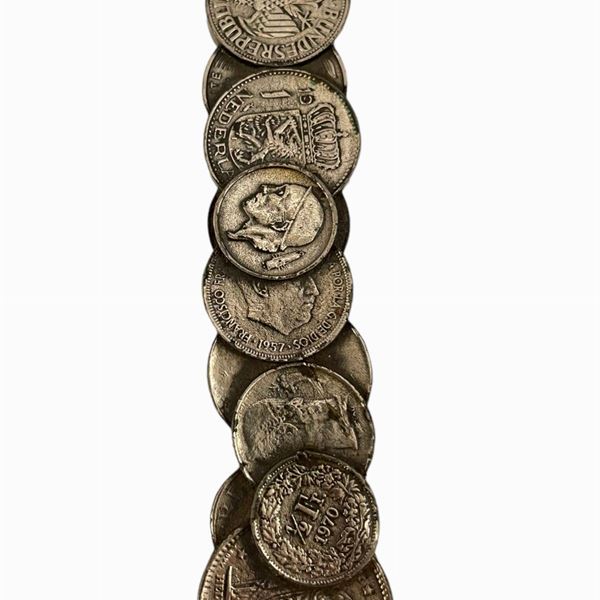 Composto da un fermacarte e un tagliacarte montati con monete europee.