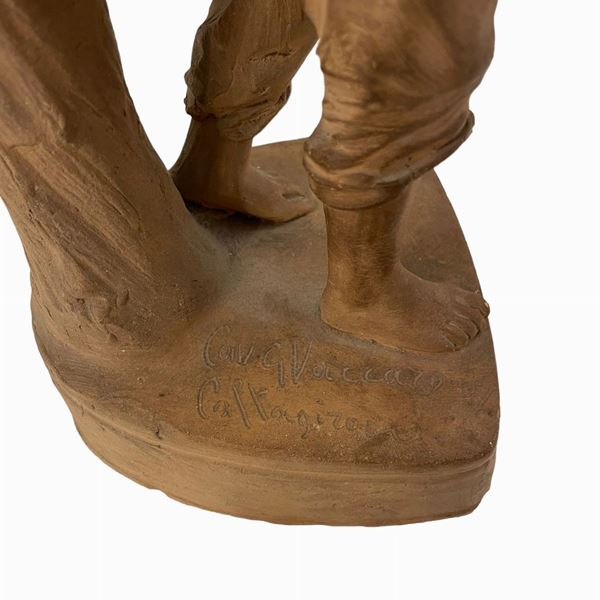 Scultura in volume, in terracotta, stampato e modellato a mano. Firmato alla base