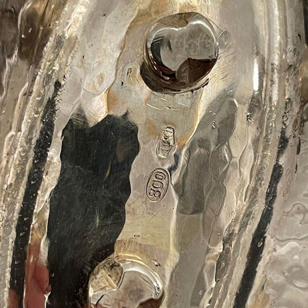 argento 800 su 1000, corpo baccellato, anse a mascheroni. Argenteria italiana. Peso netto grammi 1260