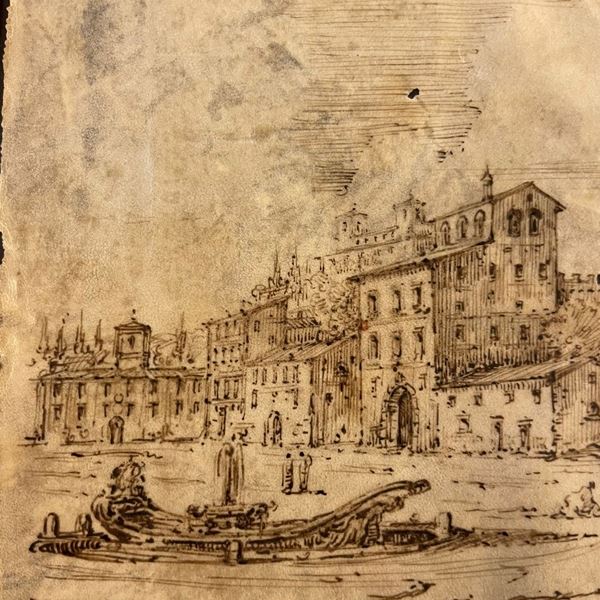 Il disegno, su carta vergellata del XVIII secolo, è tratto dalla celebre incisione di Israel Sylvestre del 1640. Gore di umidità, strappi lungo i margini e due fori della carta. In cornice.
