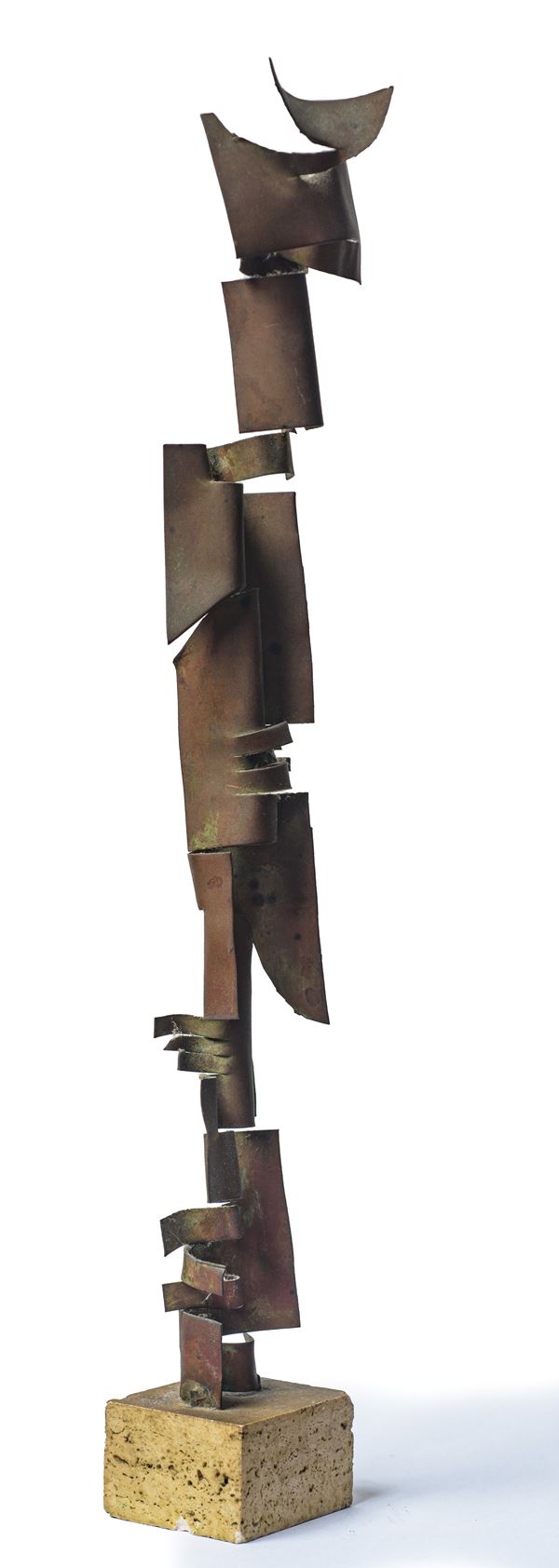 Dimensioni con la base: 37,5 x 5 x 4,5 cm.  Base in travertino.  Si ringrazia Giuseppe Briguglio per aver rilasciato parere favorevole all'archiviazione. Provenienza: Collezione Ugo Sartoris.