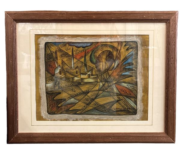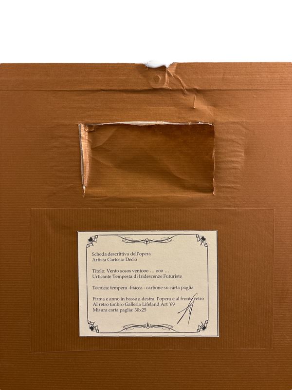 Firmato in basso a destra. Al retro: firma e timbri. In cornice.