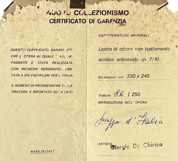 Es.n. 86/250. Firmato in lastra in basso a destra. In cornice. Al retro certificato di garanzia della Galleria.