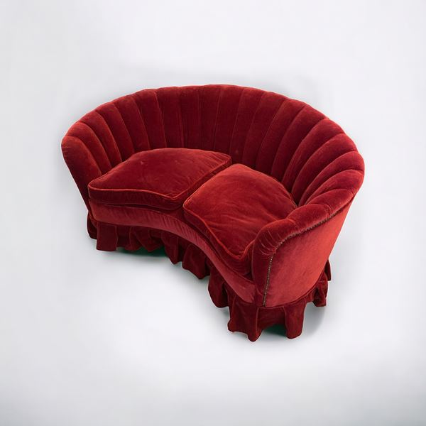 In velluto rosso capitonnè, nello stile di Giò Ponti.