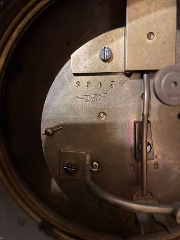 con quadrante con numero romani, di linea Luigi XIV. Movimento con suoneria ore e mezzore. Firmato Lefebvre & Fils