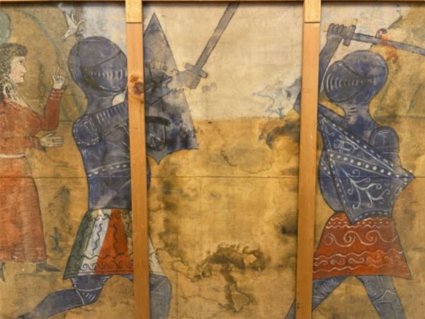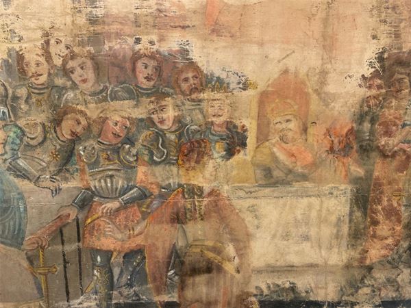 Probabile scenografia per il teatro dei Pupi siciliani. Dipinto sul fronte e sul retro, montato su telaio.
