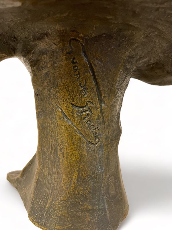 scultura in bronzo Art Noveau a patina bruna con firma al retro "G van Der Straeten" e timbro della "Societè de bronze de Paris".