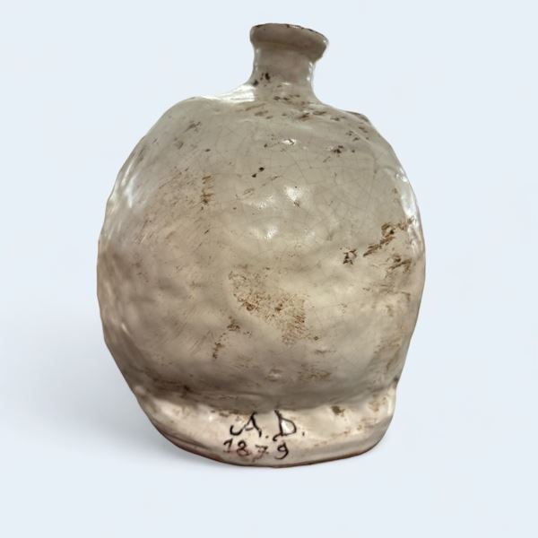 in terracotta smaltata a forma di cranio. Datata al retro "1879"