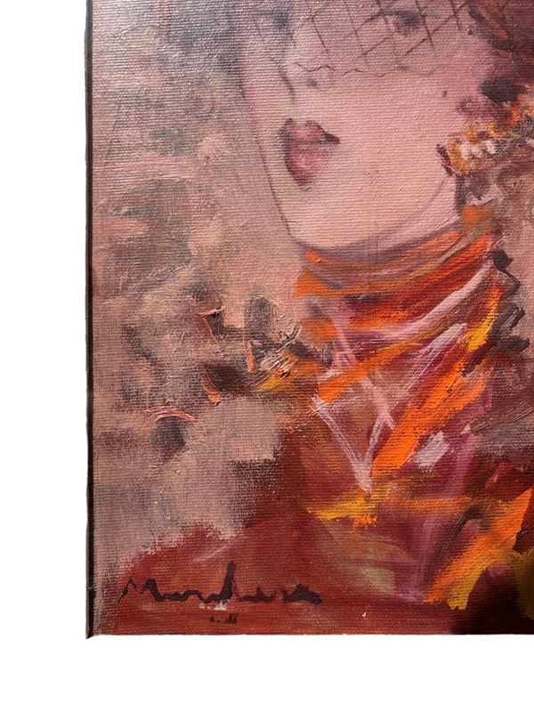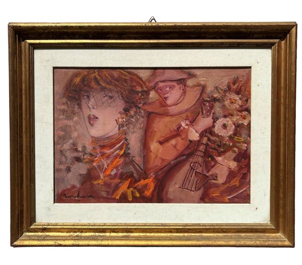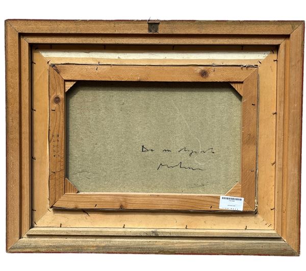 Firmato in basso a sinistra. Firma ed iscrizioni a retro. In cornice