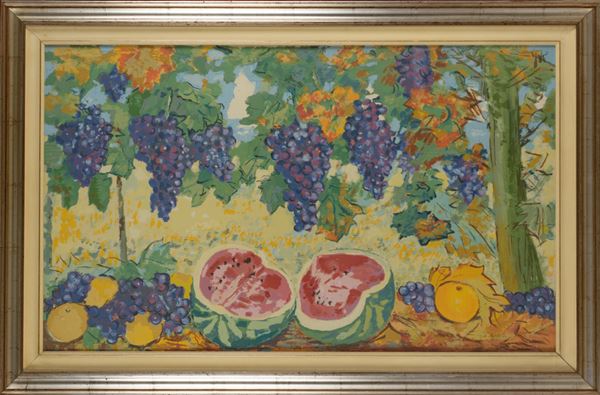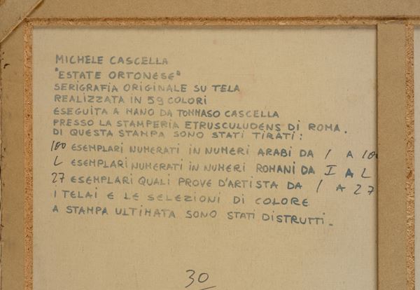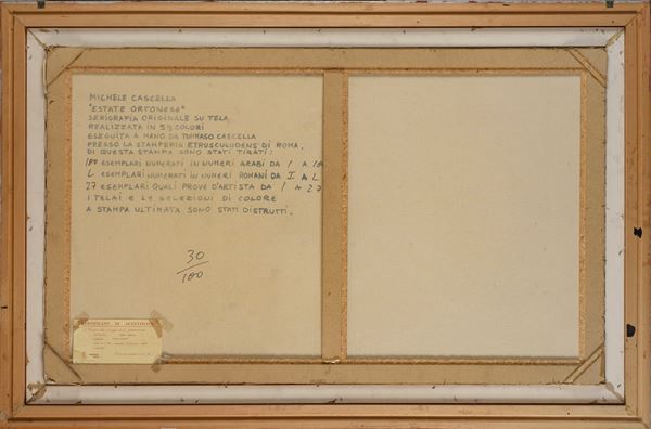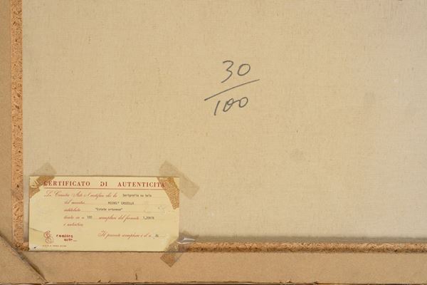 Es. n. 30/100. Firmata in basso a destra. Serigrafia su tela in 59 colori. Presentata con certificato di autenticità al retro. In cornice.