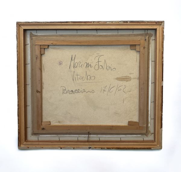 Fiemato in basso a destra. Firmato, titolato e datato al retro. In cornice.