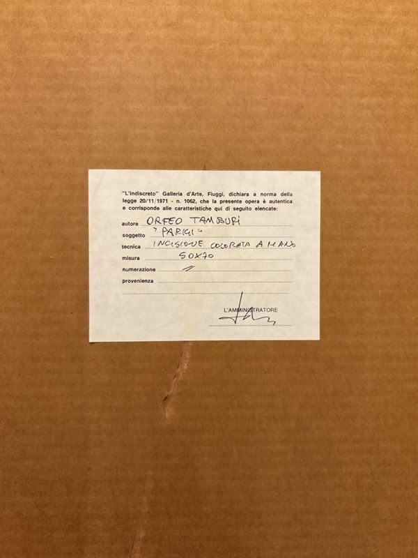Acquarellata a mano. Firmata a matita.