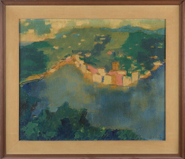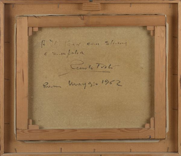 Firmato in basso a destra. Iscritto al retro: "A Ilya Peikov con stima e simpatia Riccardo Tosti Roma maggio 1962. In cornice.