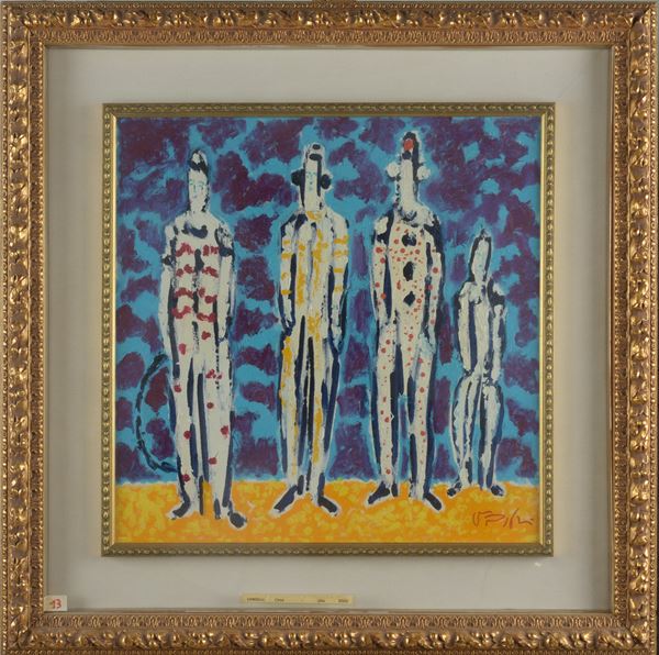 Firmato in basso a destra. Firmato e datato al retro. In cornice. Autentica su fotografia del pittore, datata 2000.