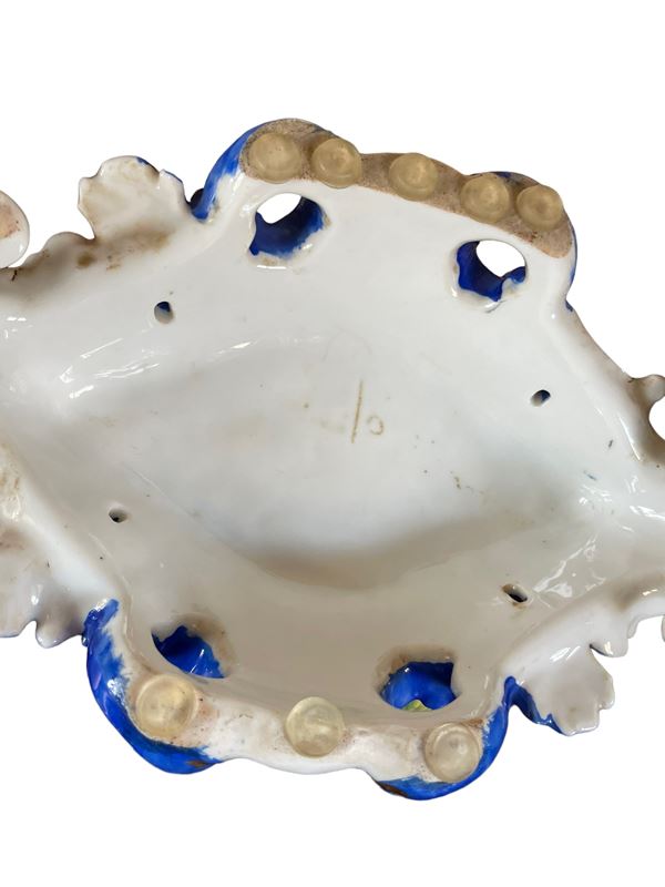 In porcellana decorata a motivi floreali, su sfondo color cobalto.