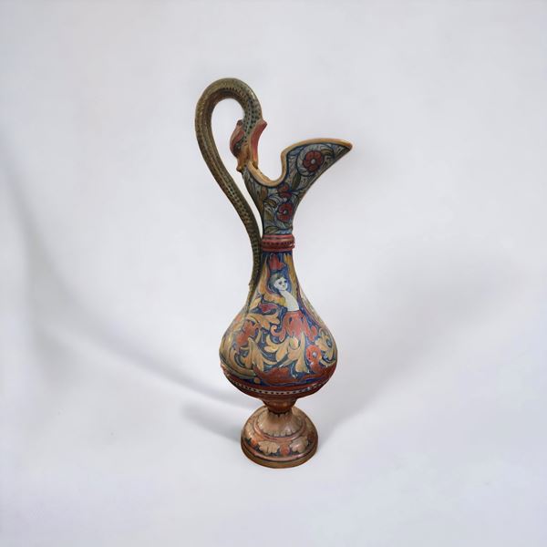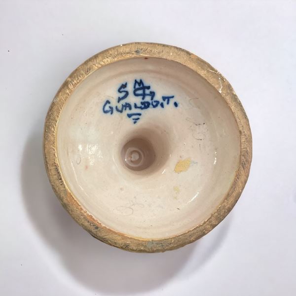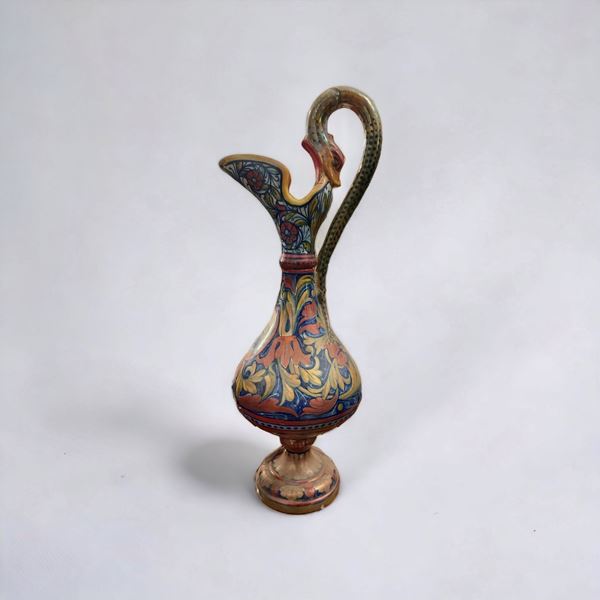 In maiolica policroma a lustro firmata alla base Gualdo Tadino. Restauro all'ansa di uno dei due vasi.