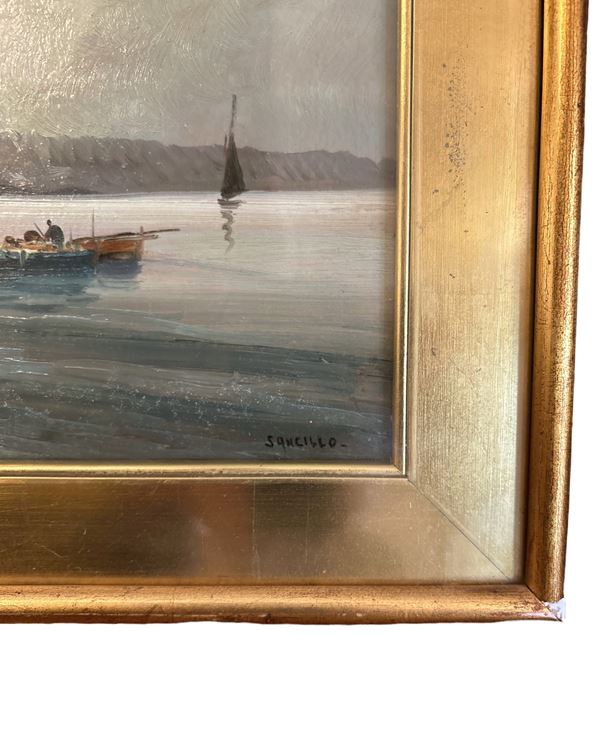 Firmate Sancillo in basso a destra e in basso sinistra. In cornice.