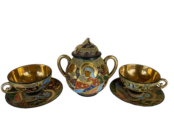 Due tazze da thè con zuccheriera Satsuma, metà XX secolo