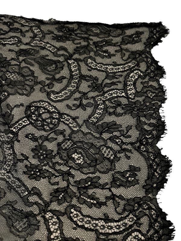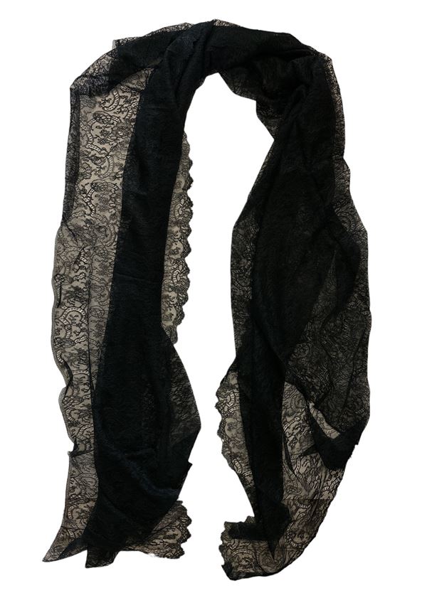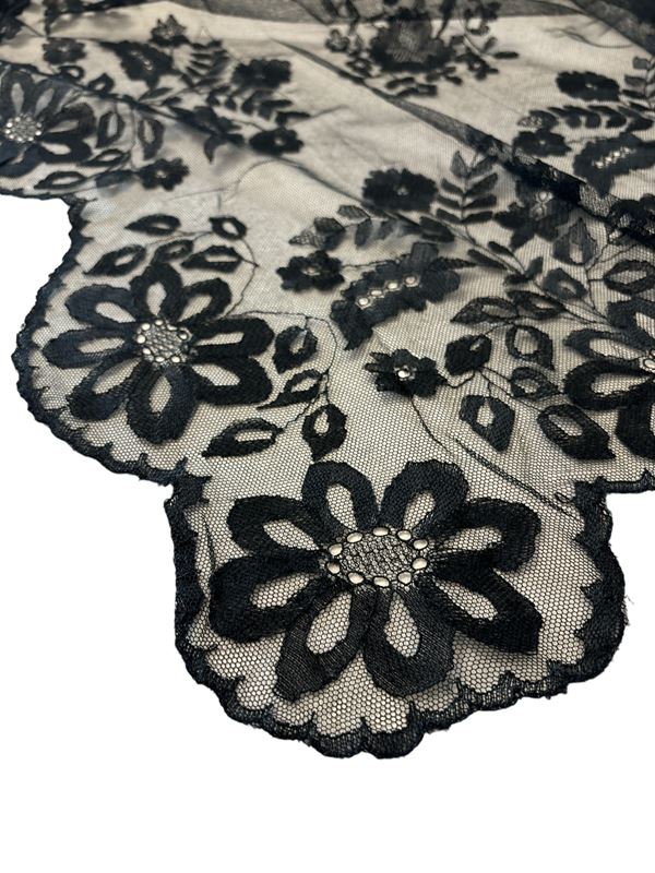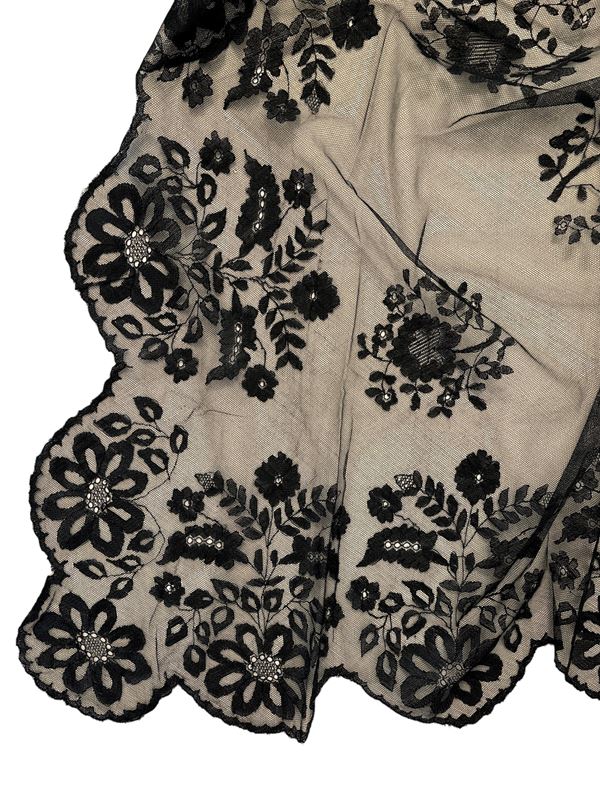 - Velo in tulle meccanico tipo Chantilly, color nero, con applicazioni floreali grandi; dimensioni: cm 235 x 100. Manifattura presumibilmente dell'Italia settentrionale, anni '30 del XX secolo.