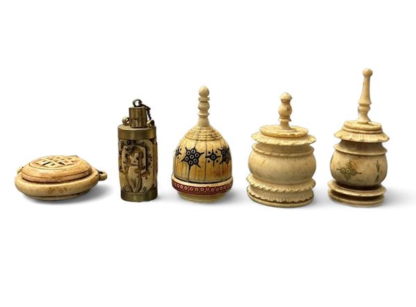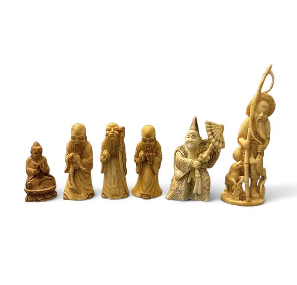 Set di 11 oggetti in osso, Manifattura giapponese, XIX secolo
