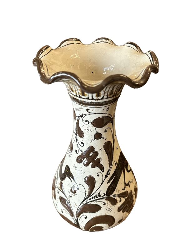 con decorazioni vegetali e volatili in smalto marrone. Stampigliato alla base 'B&C'