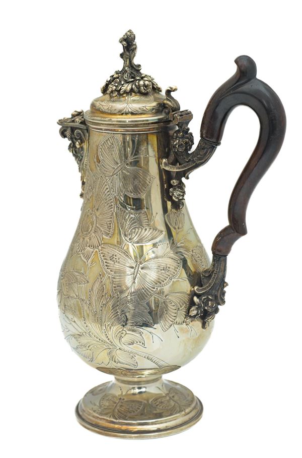 Cesellata, con manico in ebano. Manifattura italiana. Peso lordo: 997 gr.
