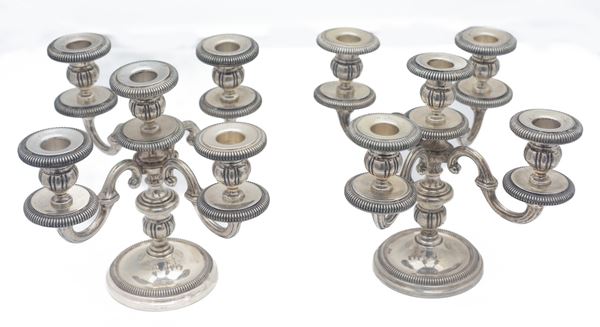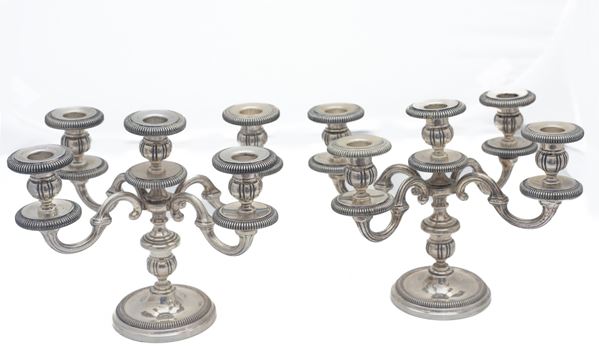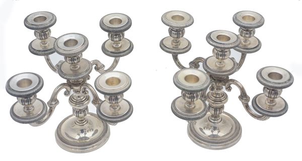 Coppia di candelabri in arg 800, Manifattura italiana, metà XX secolo