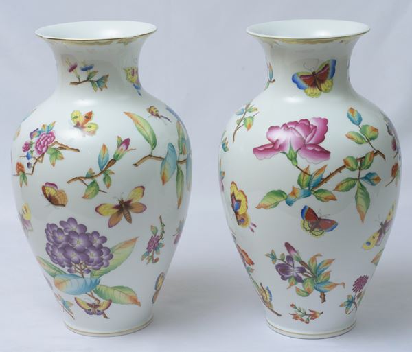 HEREND - Coppia di vasi, mod. Regina Vittoria