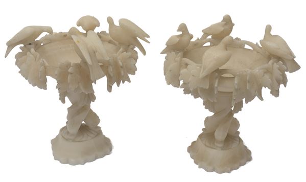 Coppia di alzatine in alabastro, XX secolo