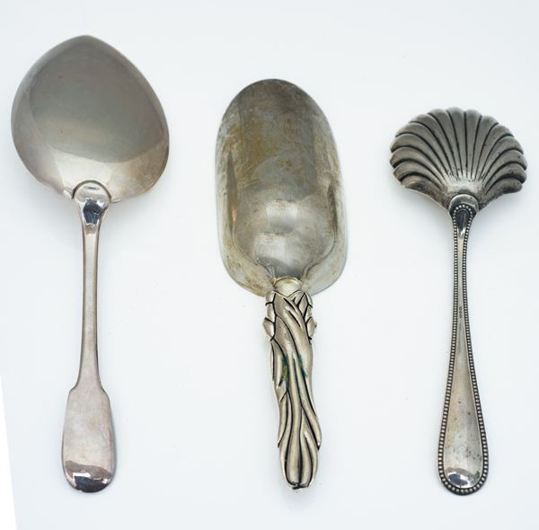 Lotto di 3 posate per la tavola in metallo argentato, XX secolo