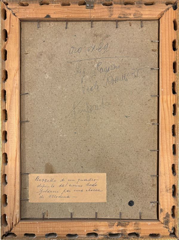 Si ipotizza che il dipinto qui presentato possa essere il bozzetto preparatorio per la pala d'altare attualmente conservata presso la Diocesi di Verona.