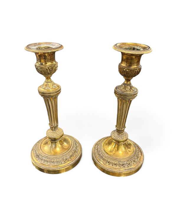 Due Coppie di candelieri in bronzo dorato, XX secolo