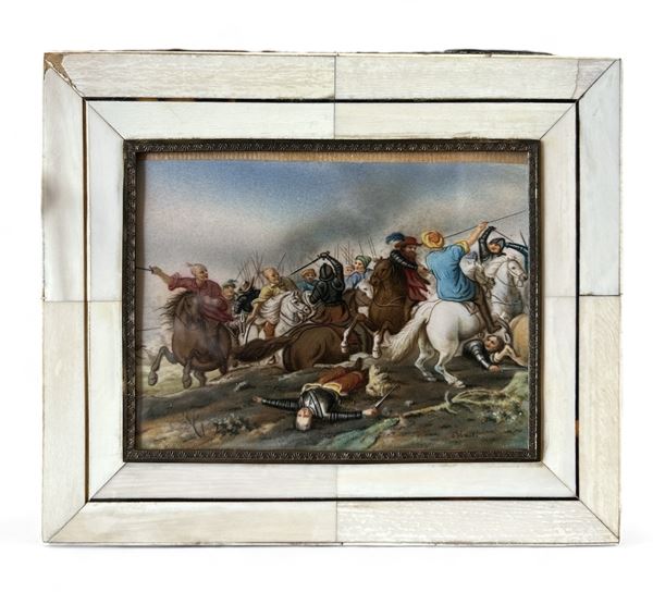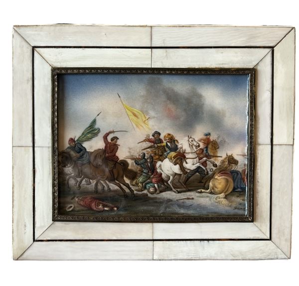 Raffiguranti battaglie. Entro cornici in madreperla.