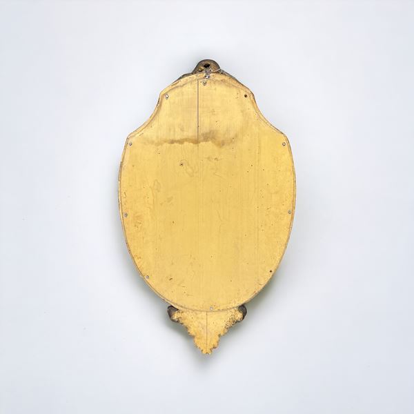 Cornice a scudo di forma centinata, in legno dorato e intagliato. Manifattura francese.