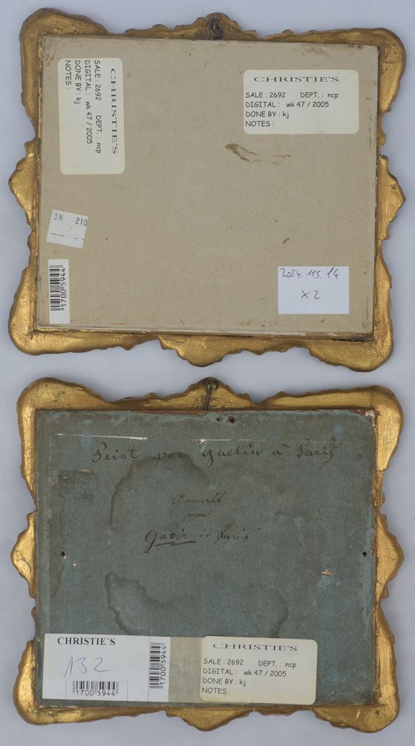 Una delle due firmate al retro. Etichette al retro asta Christie's 2005.