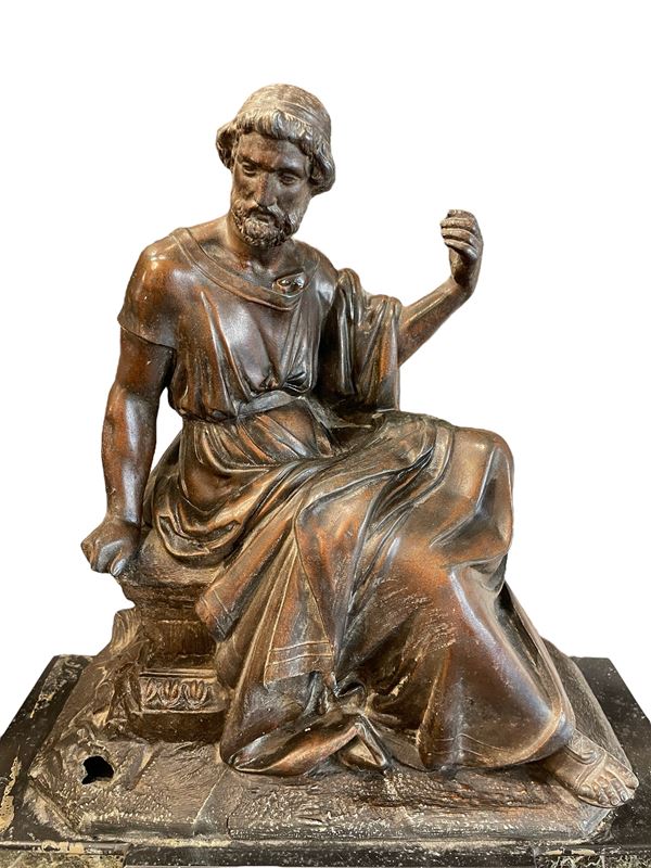 Orologio da tavolo in antimonio brunito, manifattura francese, seconda metà XIX sec.