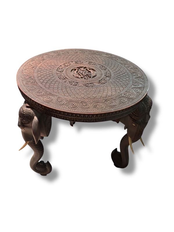 Inciso e scolpito, con gambe a foggia di elefante.