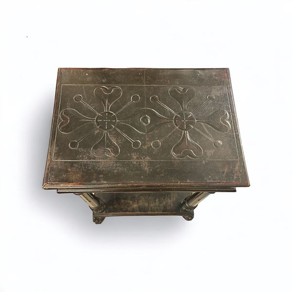 di forma rettangolare, a quattro piedi e due ripiani, in stile rinascimentale