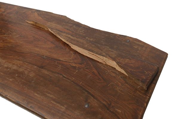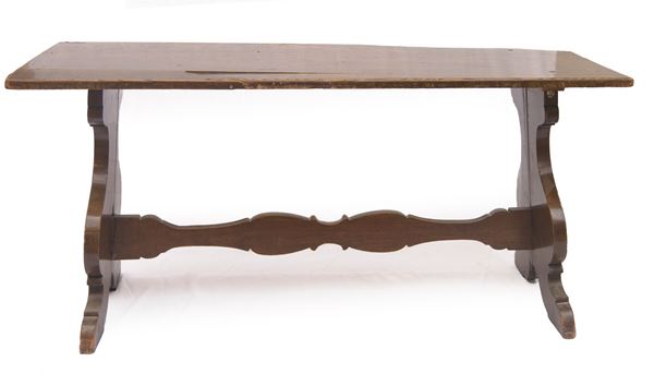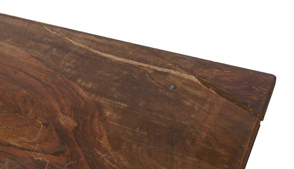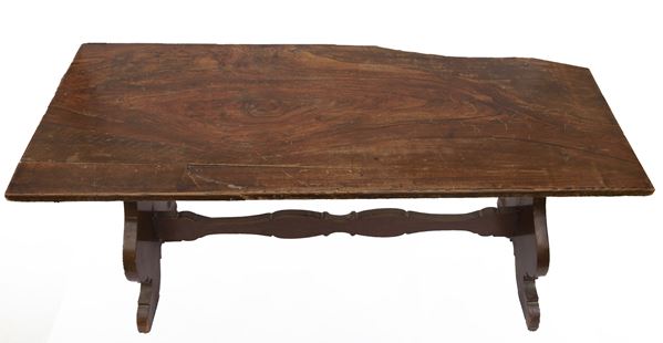 In legno di noce con basamento a lira, raccordato da crociera. Antica manifattura, Italia centrale. Rotture e mancanze.