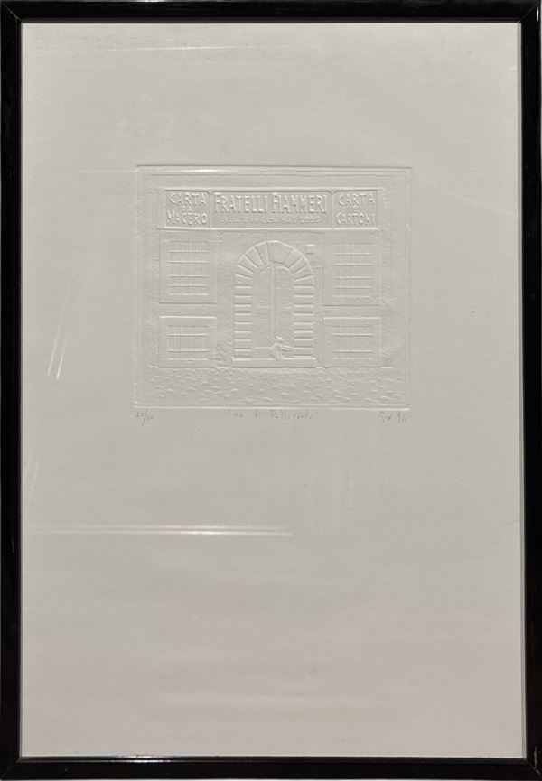 "Via della pallacorda, es. n. 40/50, 48 x 33 cm, 1994, firma indistinta in basso a destra. In cornice.