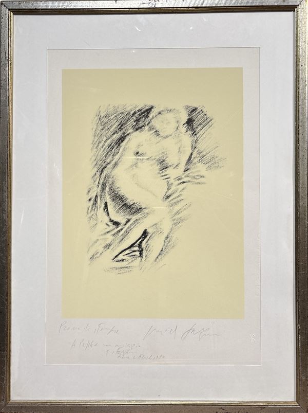 "Figura", 46 x 31 cm, prova di stampa, firma a matita in basso a destra. In cornice.