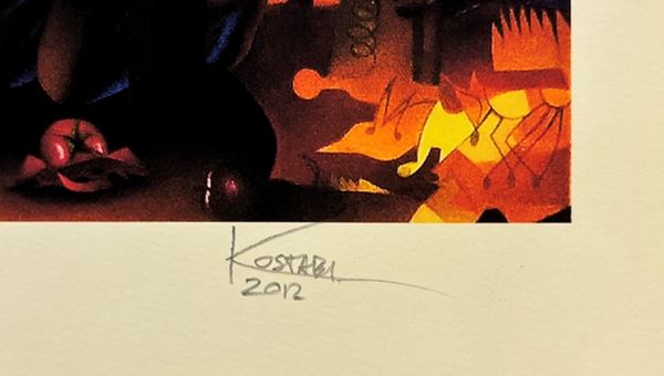 Firma e data in basso a destra. Esemplare "H. C." e timbro a secco dello stampatore in basso a sinistra.