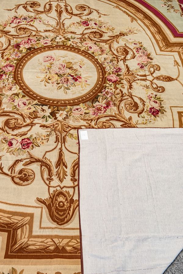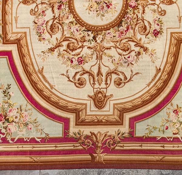 Tessuto realizzato con tecnica da arazzo, a disegno floreale in stile Luigi XVI