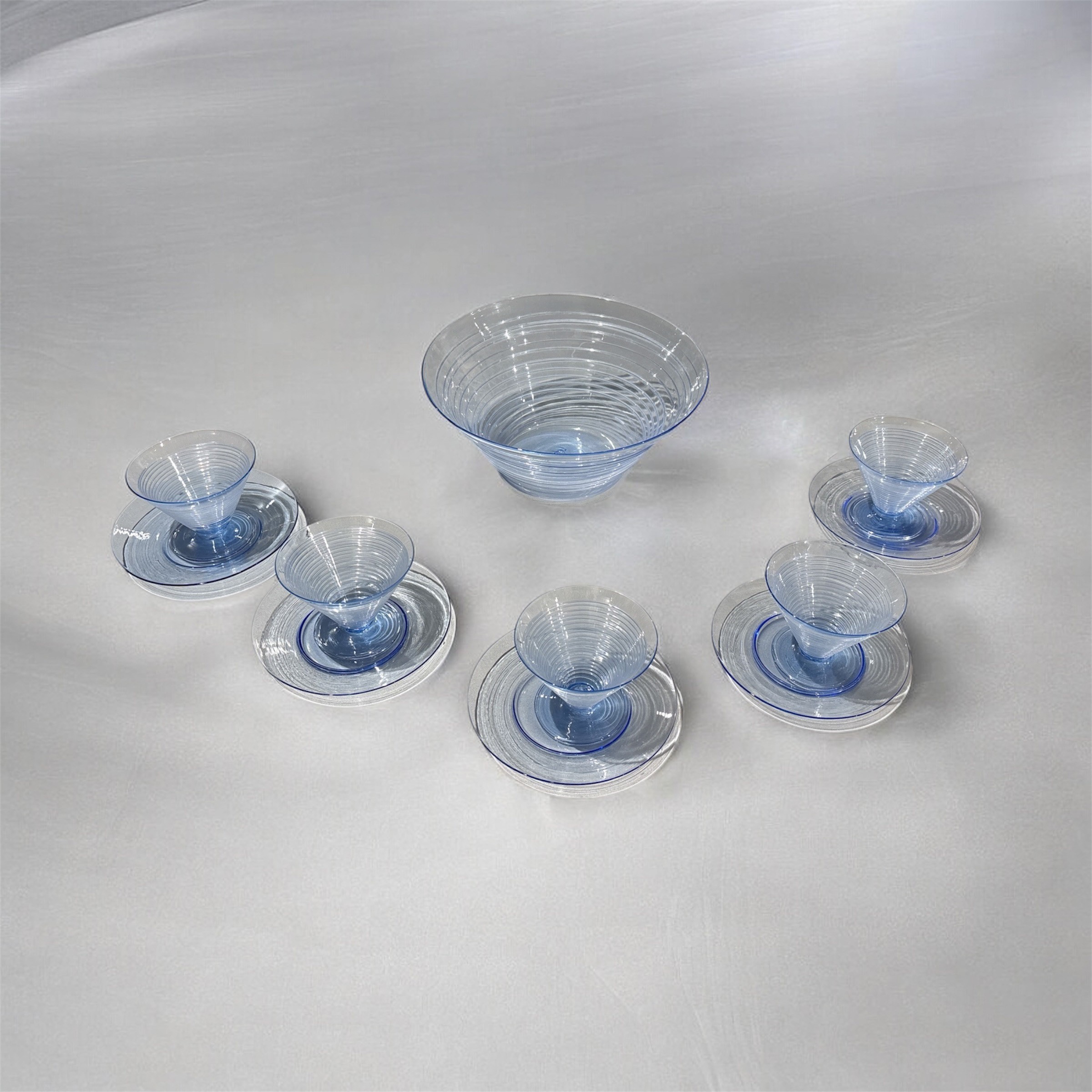 Composto da una ciotola (d. 27 cm), 5 piattini e 5 ciotoline (d. 10 cm).