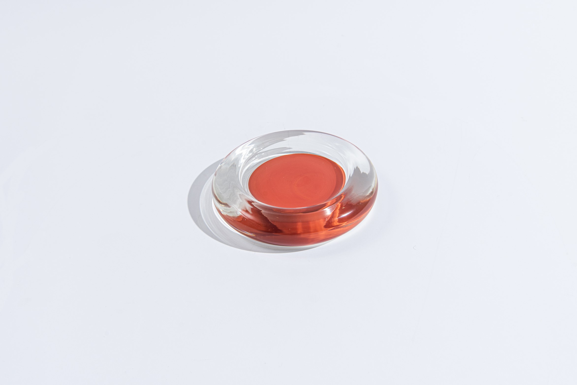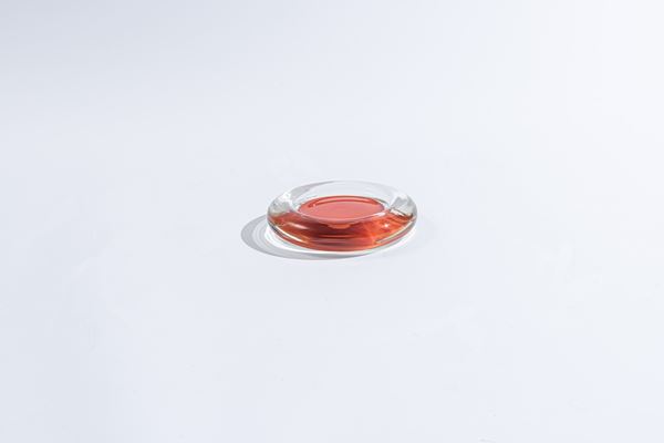 Lavorato a vetro sommerso. Marchio di produzione graffito alla base: " Venini 87".